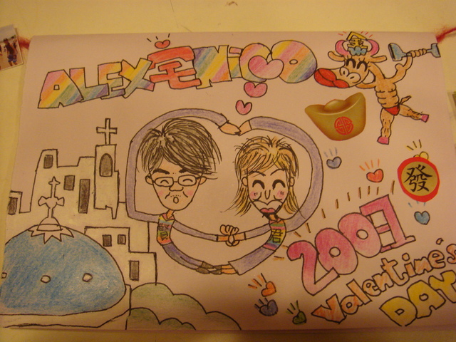 2008年的情人節,給宅博做了一張情人節卡片,沒想到2011年的我們真的實現卡片中的心願,來到希臘愛情海的浪漫蜜月,